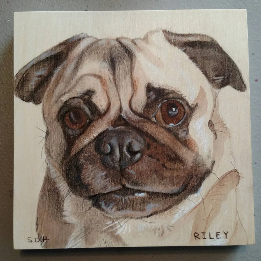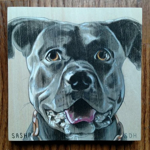 ... was slow and cold in the mural arena, so I zeroed in on my pet portrait business. A multitude of hand-drawn and painted pups were delivered as Christmas gifts that season!